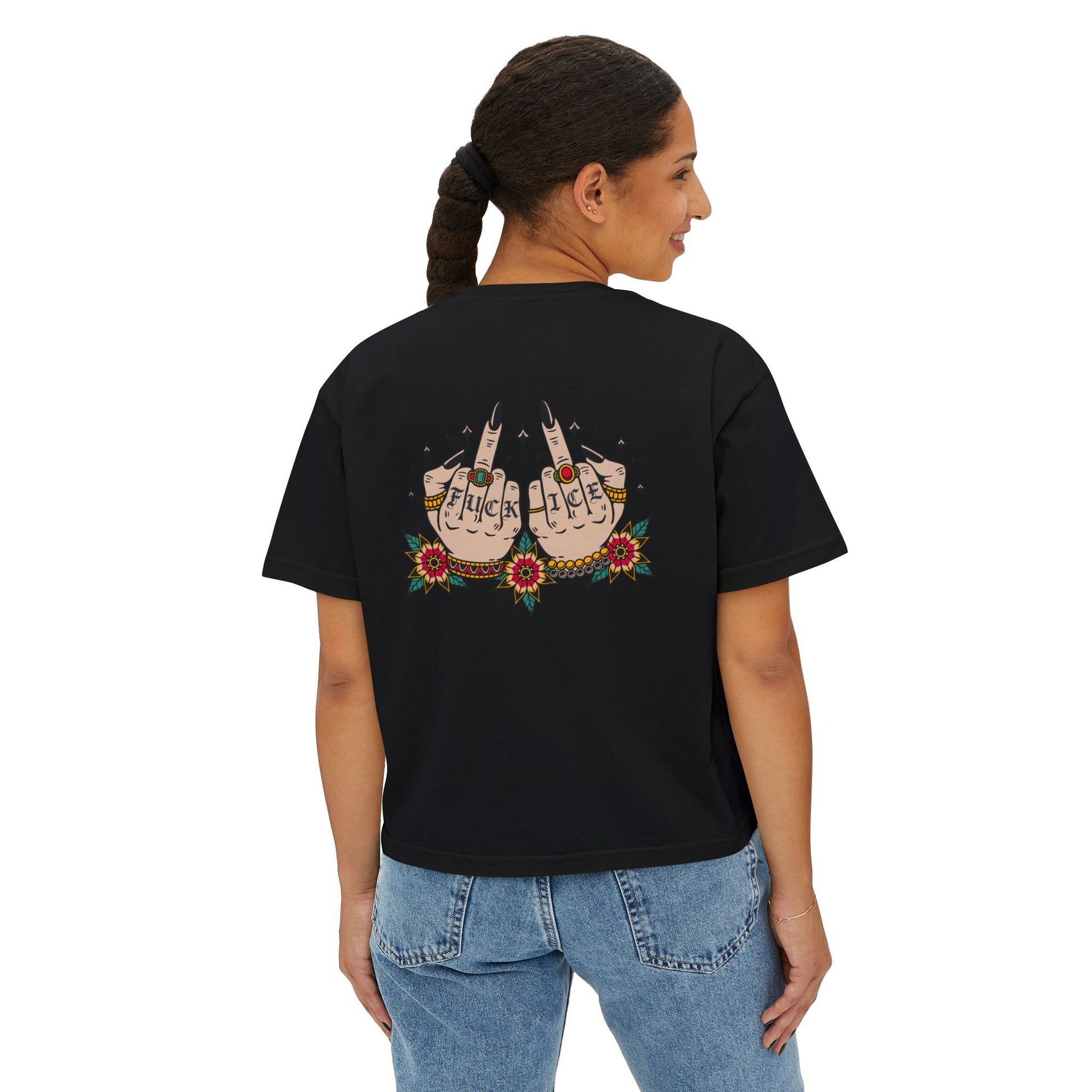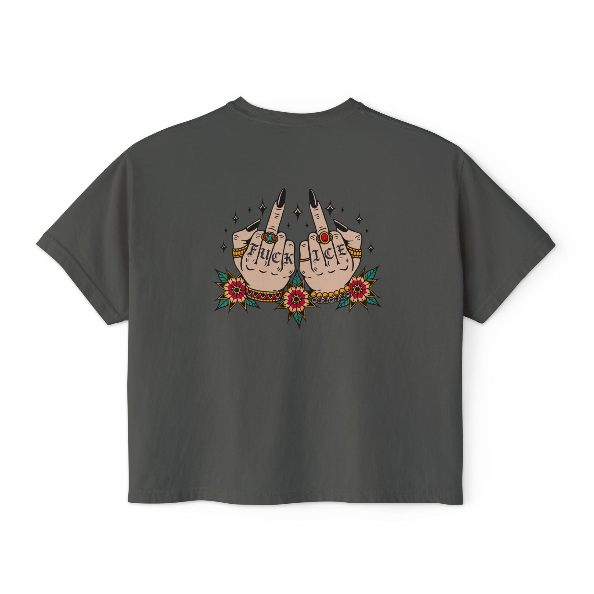 Chinga La Migra- FUCK ICE middle finger Boxy Tee