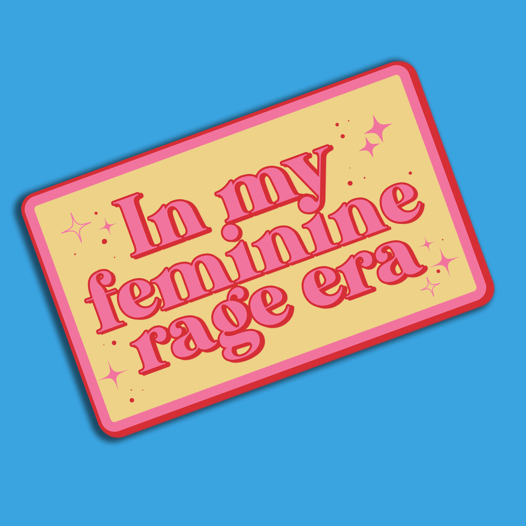 In My Feminine Rage Era Sticker. 3 x 2 inches. Film is star sparkly!